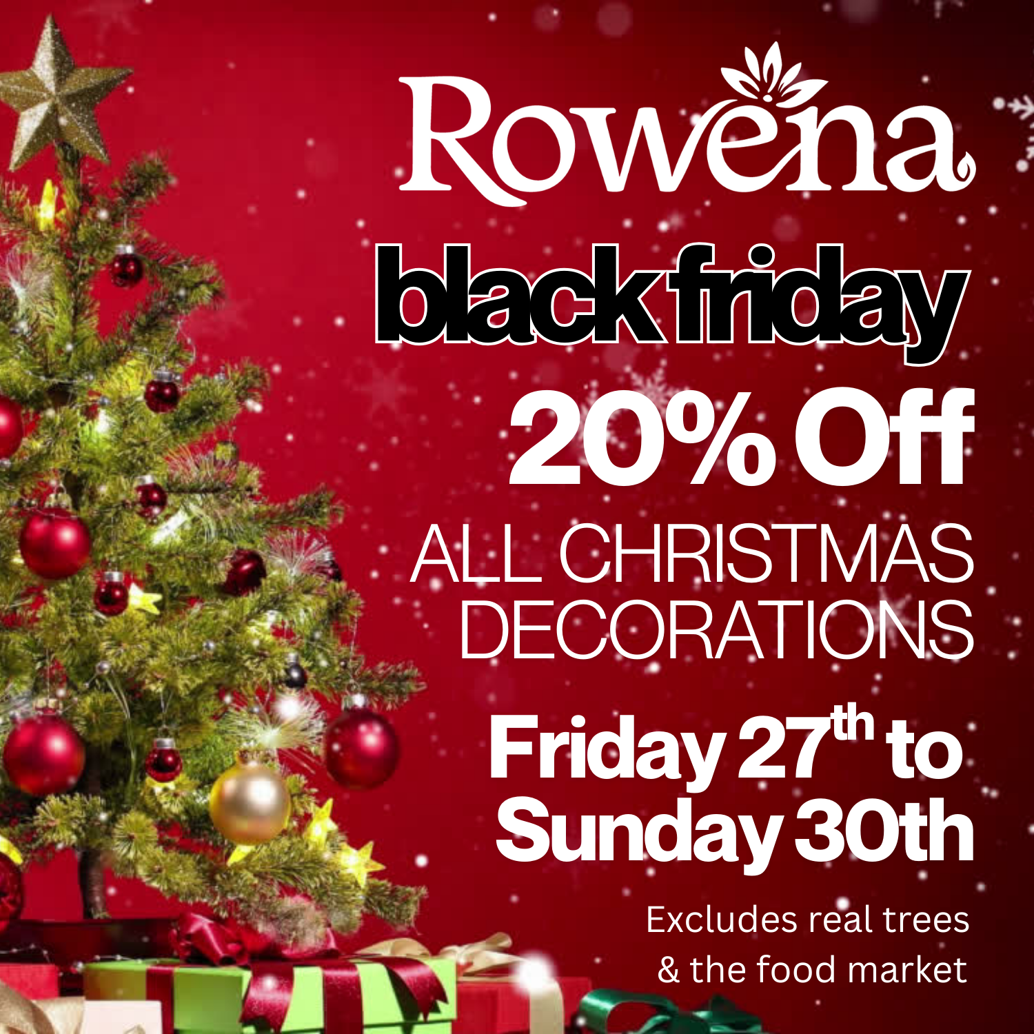 Step into the sparkle of the season at Rowena Garden Centre this Black Friday! From twinkling lights and baubles to wreaths, garlands and festive ornaments, enjoy 20% off all Christmas decorations — now until Sunday 30th November. It’s the perfect time to refresh your festive look or stock up on those finishing touches that make your home feel truly magical.